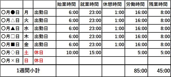 会社の就業表にこのように記入すると妄想すると、雇用側はこの労働時間16時間/日の数字を見て多分このように反論してくるように想像できます。