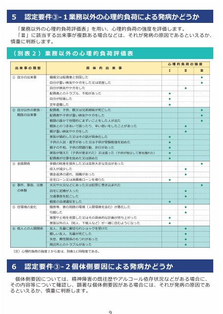 • 3)別表1の「Ⅱ」に相当する具体的な出来事が複数個ある場合、「Ⅰ」に相当すると評価できる場合(複合要因を認めてあげることがある)