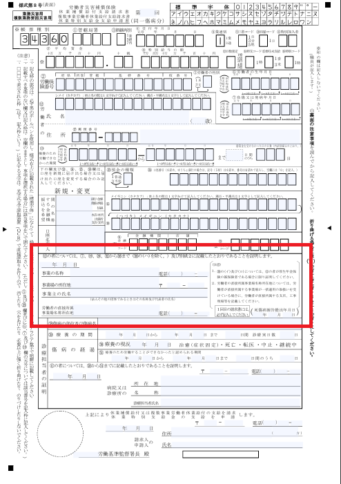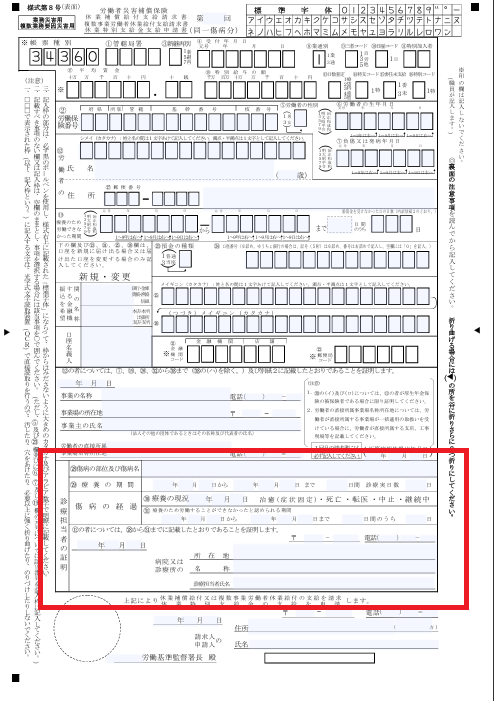 主治医の記載欄があります。ここに記載してもらわないと労災認定を申請できません。